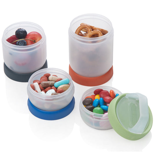 humangear STAX, Stackable Snack Containers - 4-Piece Leak-Proof Snack Travel System - FDA-Food Safe, BPA/PC/Phthalate-Free - Stackable & Click-Together Food Storage, Small