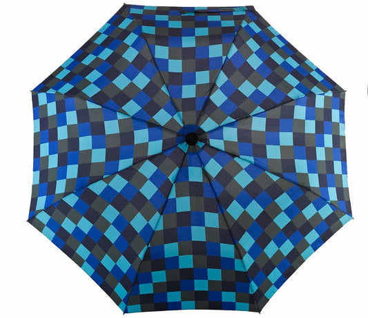 EuroSCHIRM Light Trek Automatic Folding Umbrella, Compact, Ultra-light weight, 38”, Blue Squares