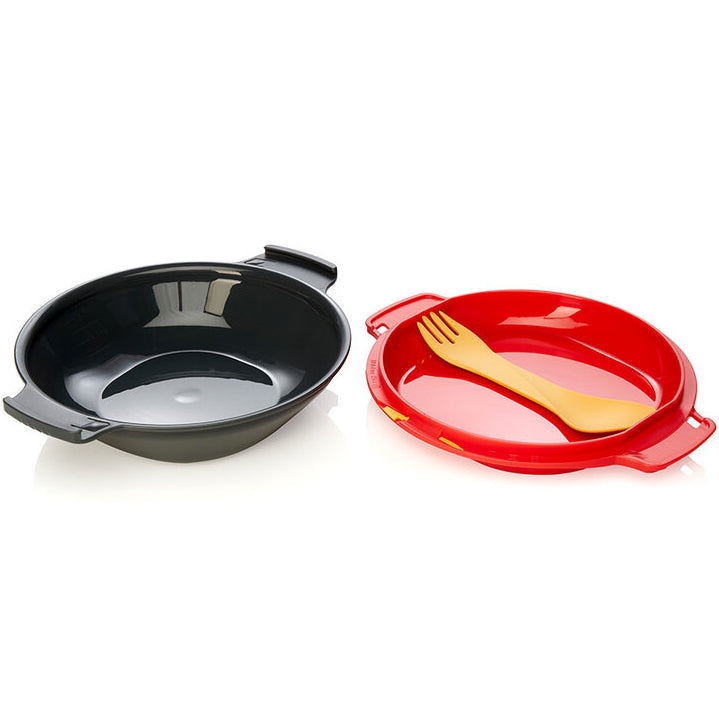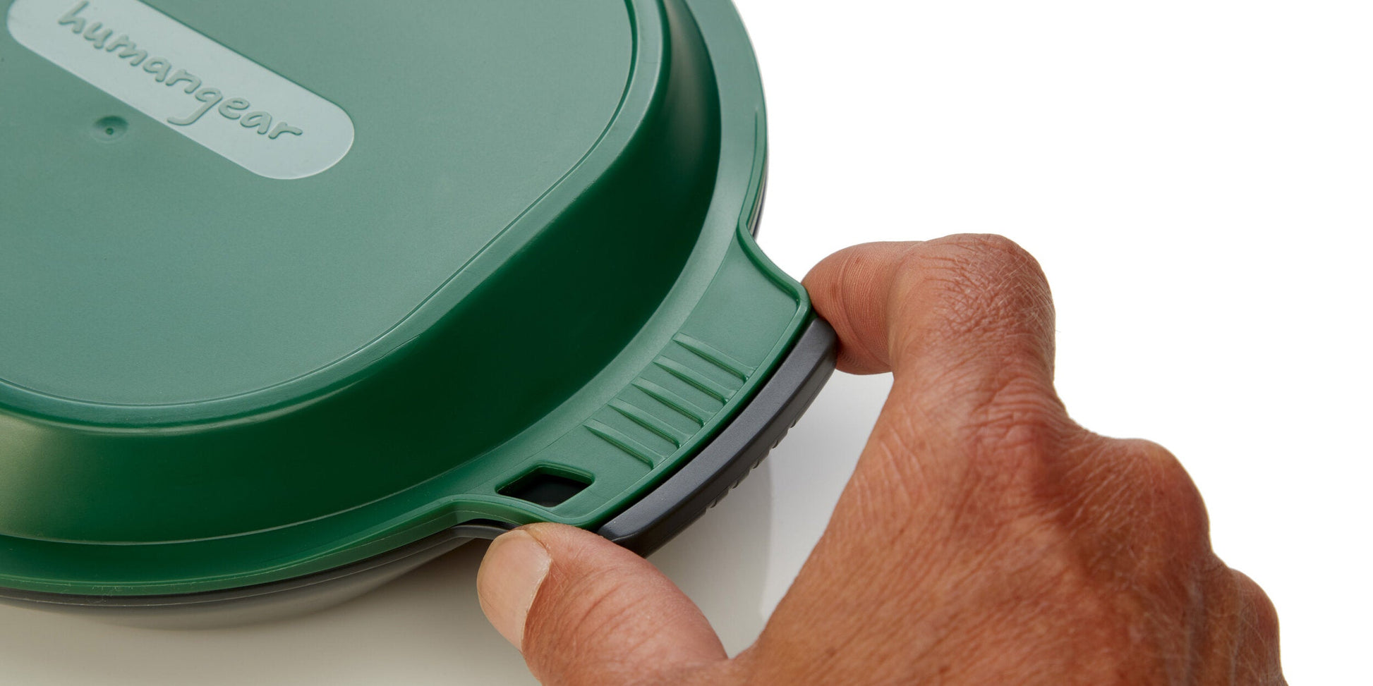 The humangear GoKit has a number of subtle features to make your eating experience just that much better. The side handles on the plate and bowl make them easy to hold. Interior volume markings on the bowl and cup help you measure fluids when preparing meals or drinks. Thermal ribs on the base of the bowl help you hold onto that hot soup or chili with ease. And high-gloss surfaces make cleanup a quick rinse or wipe away.