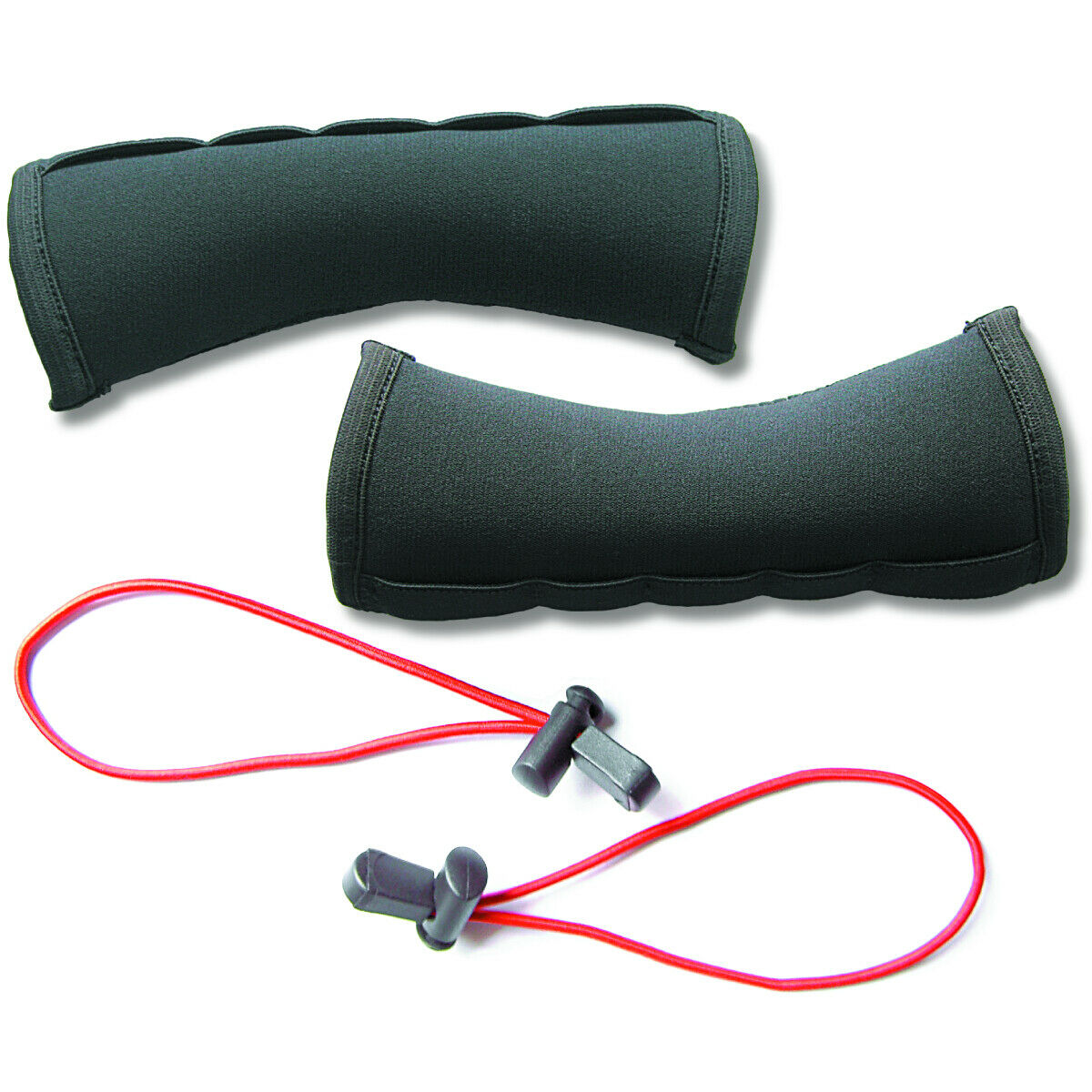 The Holder-Set contains one pair of black neoprene holders and one pair of red adjustable bungee loops. The neoprene holders offer strong hold due to their elasticity and secure your trekking umbrella so it never gets lost. The material is weather-proof and very light.